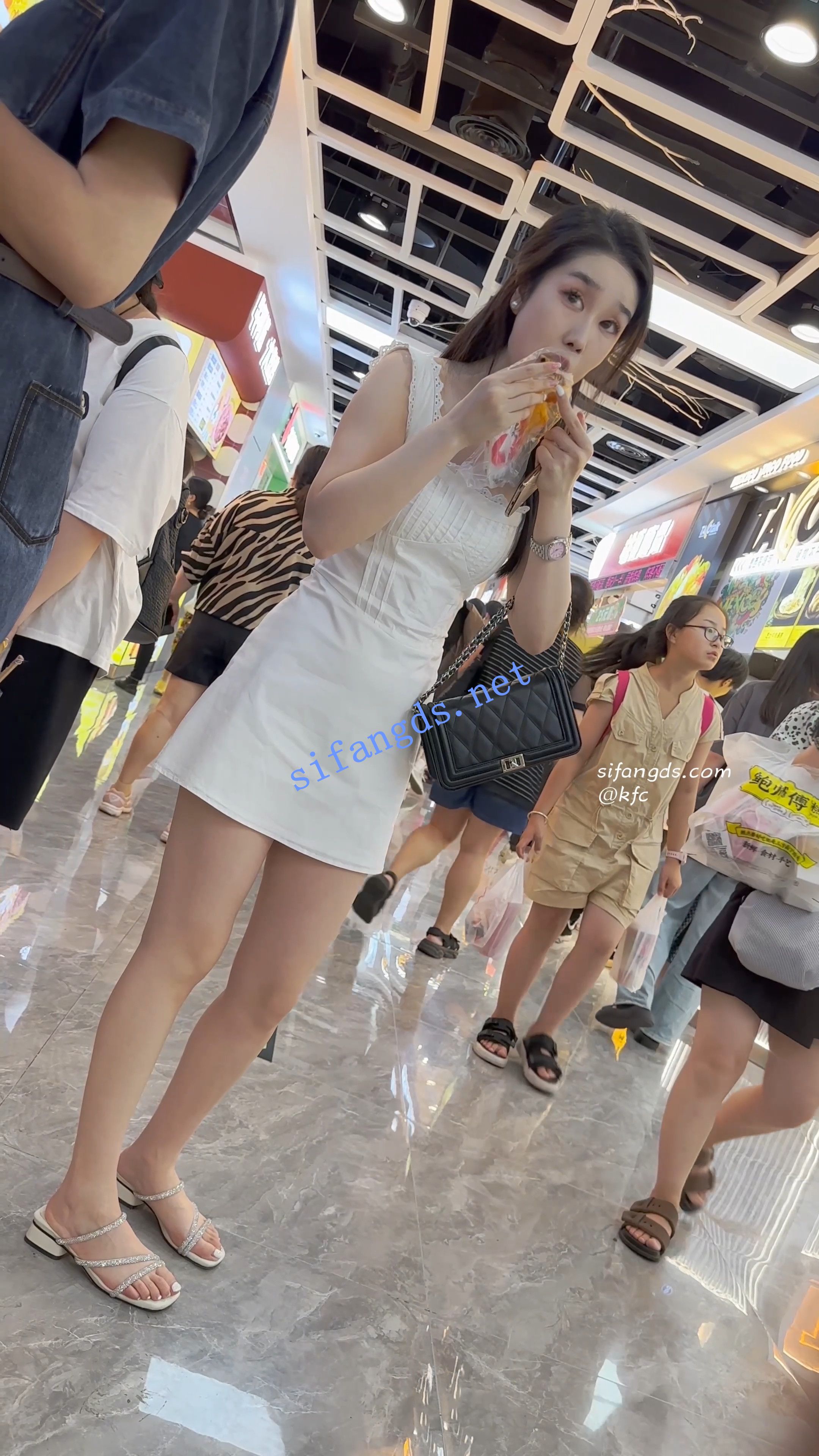 【KFC】吊带裙少妇独自逛街吃小吃·粉色薄内微透·低角度CD