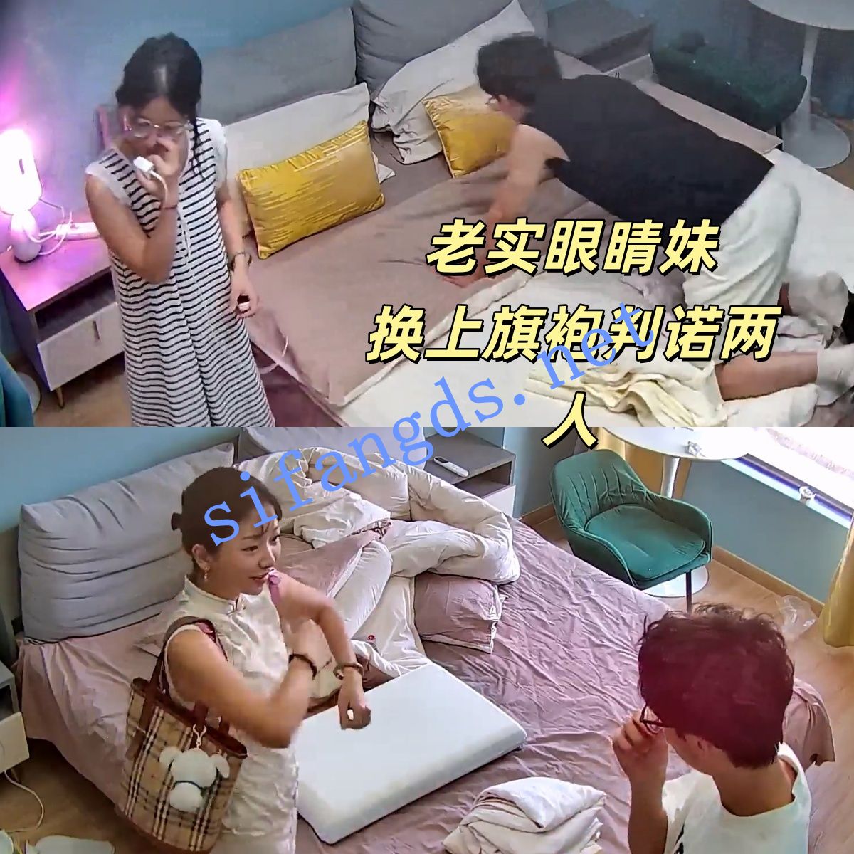 ⭐酒店收藏级:呆萌眼镜女化完妆变高冷旗袍女神让男友爽干