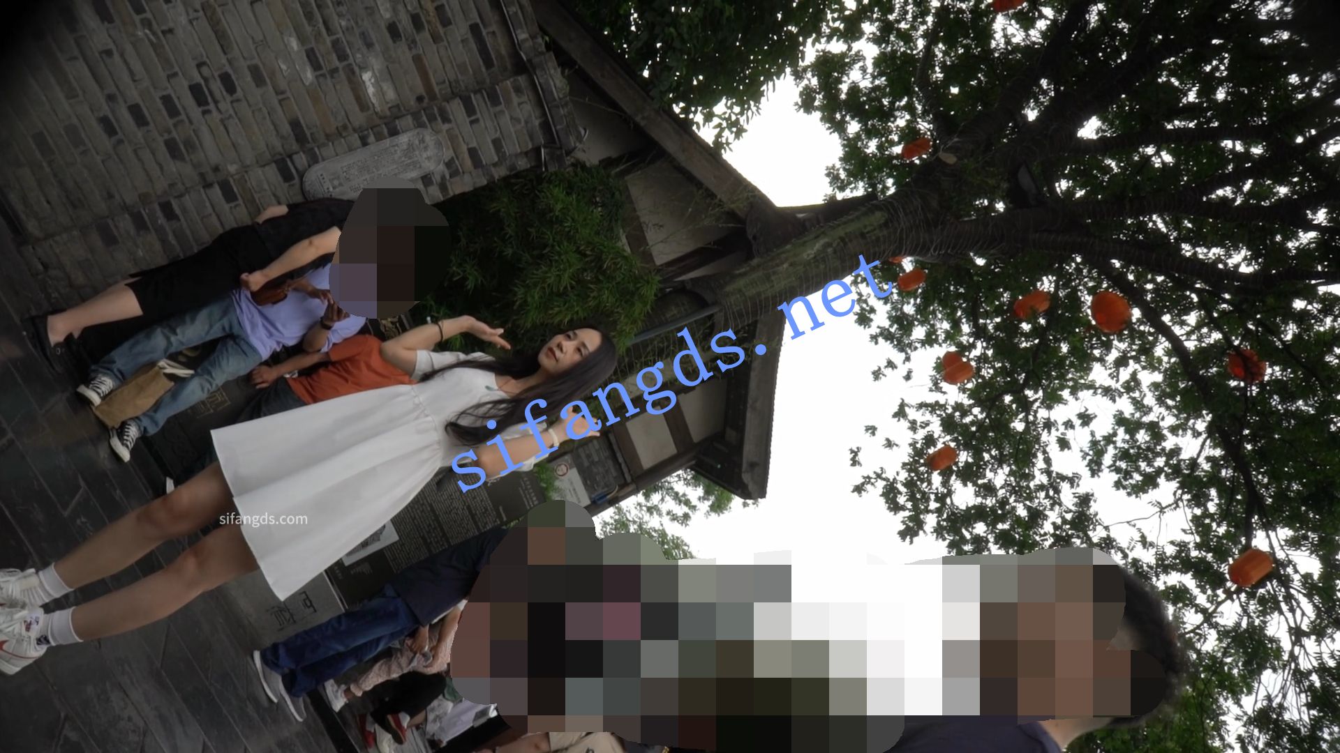 (空城原创)白裙美女逛街,条纹小N前面透明漏黑森林